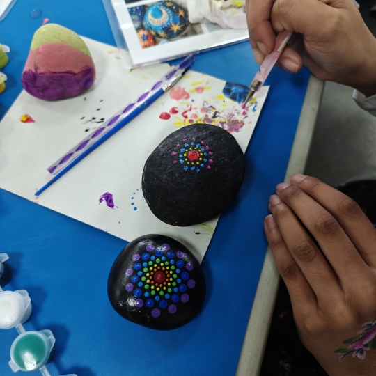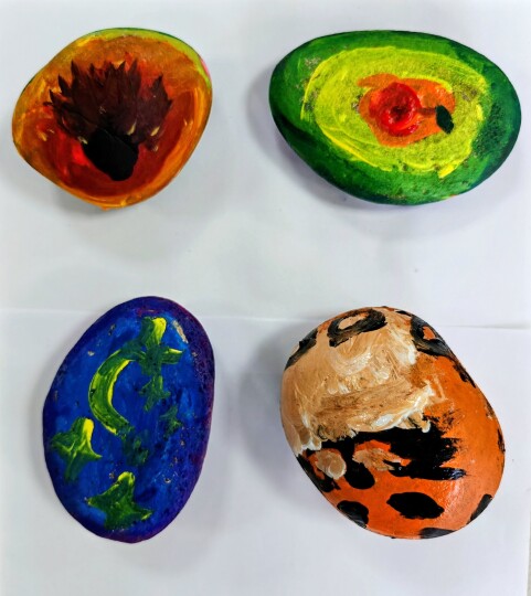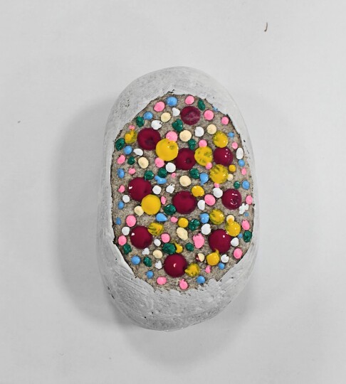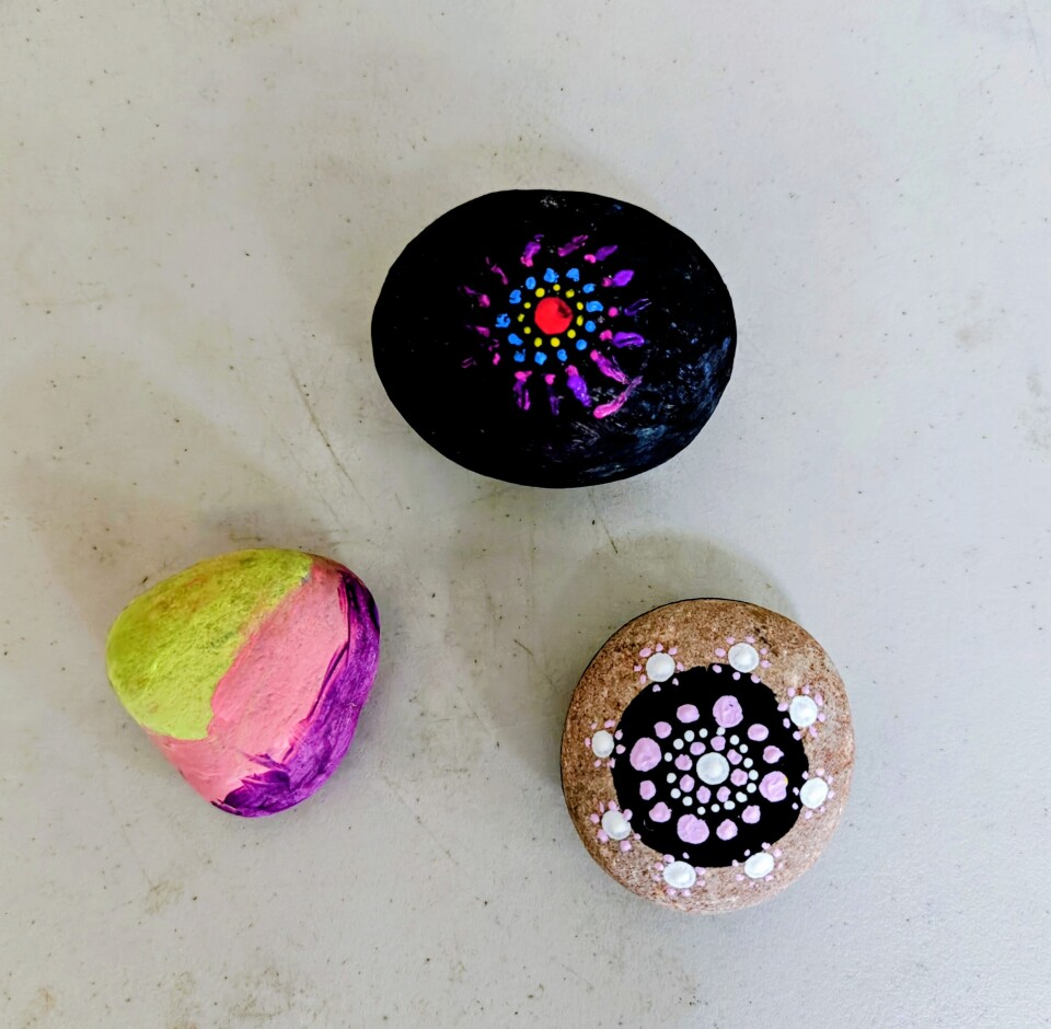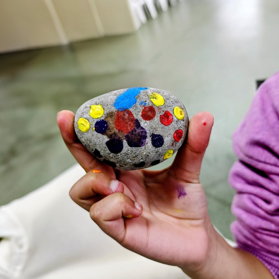 a 10‑year‑old girl who adores painting and crafting spent a long time working at the table. She created four painted stones and even sketched a character. She told Carolyn that crafting helped her feel relaxed and happy — exactly the kind of positive impact we hope for.